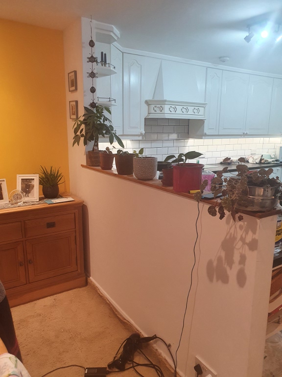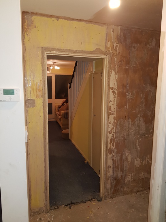 existing wall, therefore the whole thing needed to be plastered to hide the join. This was a larger piece of work, this time with two doors and three