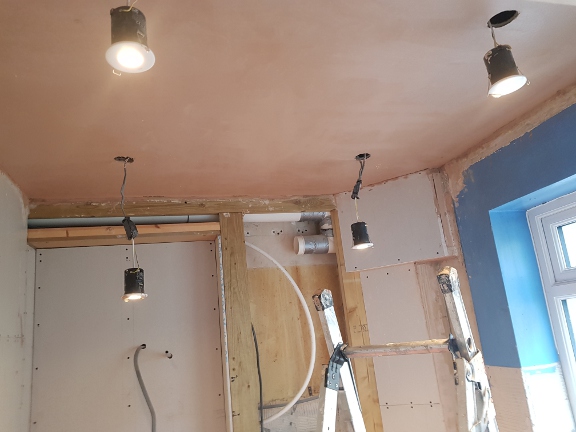 Having by now done many small pieces of work and whole walls, the time came to plaster my first ceiling. Ceilings are much more difficult because you are